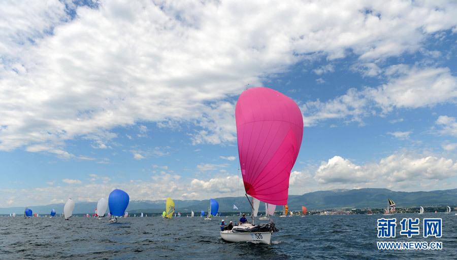 这是日内瓦湖上进行的帆船赛(2014年9月10日摄)。