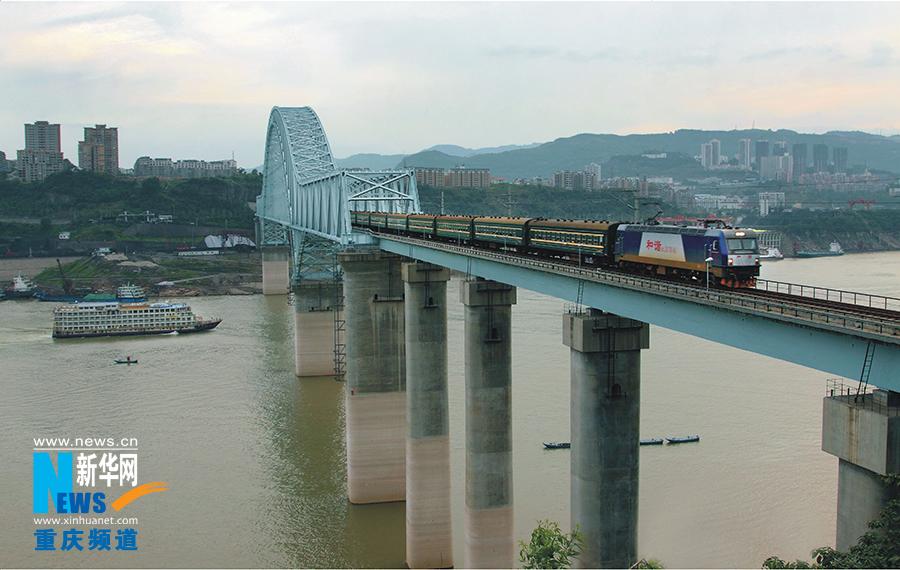 2010年底通车,全长1147米的三峡库区第一条长江铁路大桥。万州宣传部供图