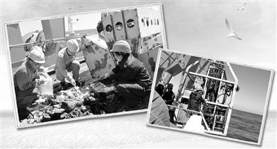 ① 大洋第34航次科考队员在“大洋一号”后甲板对刚刚从深海底取回的样品进行初步处理。