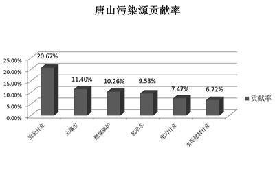对于唐山来说,冶金行业是唐山市各功能区PM2.5的主要来源。这是由于唐山是京津冀地区重要的工业城市,以冶金、煤矿、建材、化工等高能耗、高排污的重工业为主的产业结构以及以煤炭为主的能源结构,使得唐山市的大气环境污染日渐加重。