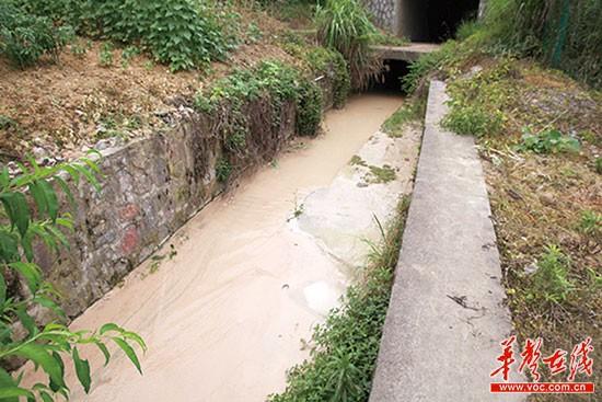 5月24日,慈利工业园污水口排出的浑浊污水流经当地一条灌溉渠道。