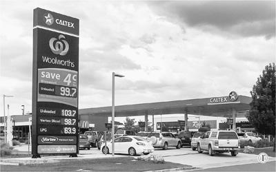 图①:澳大利亚堪培拉一家加油站外的价格表显示,1月24日91号汽油价格已跌至每升0.997澳元。但直到此前一周,澳大利亚的零售油价还在每升1.2澳元左右。
