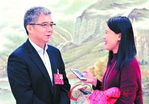 记者采访全国政协委员、中国广核集团有限公司董事长贺禹。 广州日报记者黎旭阳、庄小龙 摄