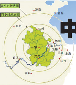 1月12日,国务院正式批复《皖江城市带承接产业转移示范区规划》(下称《规划》),标志着皖江城市带承接产业转移示范区建设上升为国家战略。《规划》指出,在空间布局上以沿长江一线为发展轴,以合肥和芜湖两市为“双核”,以滁州和宣城两市为“双翼”,构筑“一轴双核两翼”产业分布的新格局。
