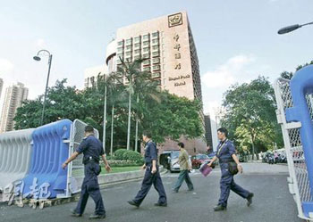 酒店门口21日有保安员站岗,酒店外围围起铁马和铁丝网,酒店附近一段白鹤汀街会在周四开始封闭,行人路和巴士站亦会暂停使用。