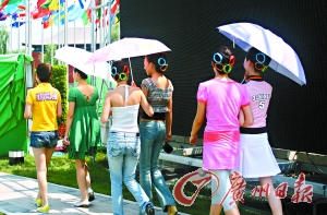 对于这些升旗礼仪小姐来说,最考验她们的是太阳的暴晒和参加仪式时的注意力高度集中。“我们的工作性质就是这样,必须在太阳下保持良好的形象,有时候太阳大得让人眼睛都睁不开,但只要看到运动员从身边走过,我们就不记得太阳的毒辣了,要让自己的笑容更加亲切,眼要睁得更大。”脱下短袖外套,明显能看出李媛媛的胳膊晒得很黑,“这还算好,主要是脸上难受得多,容易被晒伤。因此,我们在脸上涂了很多东西。”她说。