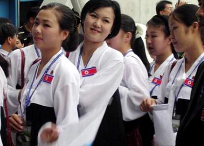 中新网8月4日电 据韩国《朝鲜日报》报道,令朝鲜引以为豪的美女啦啦队将现身2008北京奥运会。这是她们第一次在奥运舞台上亮相。朝鲜美女啦啦队通过2002年釜山亚运会和2003年大邱世界大学生运动会而广为人知。