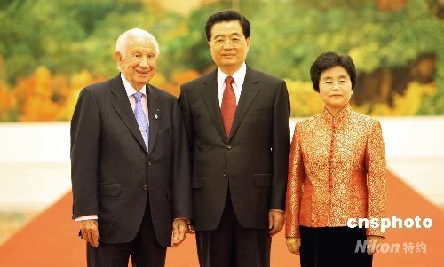 图:胡锦涛夫妇欢迎萨马兰奇出席北京奥运会
