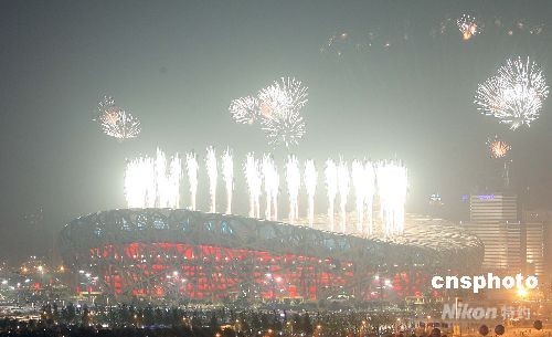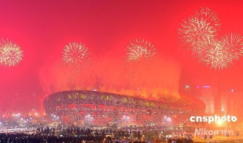 图:奥运会开幕式烟花映红北京夜空