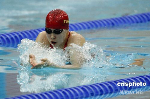 8月12日,中国小将孙晔在北京奥运会女子100米蛙泳决赛中,以1分08秒08的成绩获得第7名。澳大利亚名将琼斯获得该项目金牌。中新社发 杜洋 摄