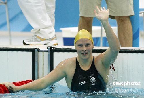 8月12日,澳大利亚选手莱塞尔·琼斯在北京奥运会女子100米蛙泳决赛中,以1分05秒17的成绩为澳大利亚队获得一枚金牌,并打破奥运会纪录。 中新社发 杜洋 摄