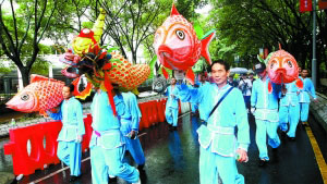 昨天下午2时,香港庆祝奥运大巡游活动正式拉开帷幕。来自深圳市盐田区沙头角的鱼灯舞队排在32个表演团队的第5位,格外显眼。