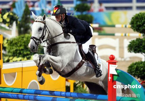 图为获得奥运马术三项赛团体赛金牌的德国选手欣里希·彼特·罗迈克 。