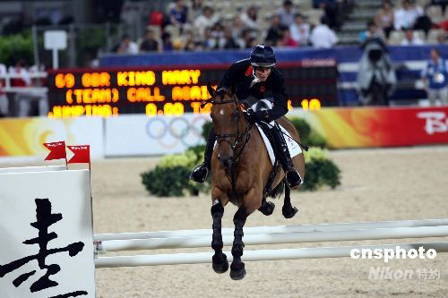 图为获得奥运马术三项赛团体赛铜牌的英国选手玛丽·金飞跃障碍。