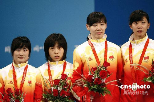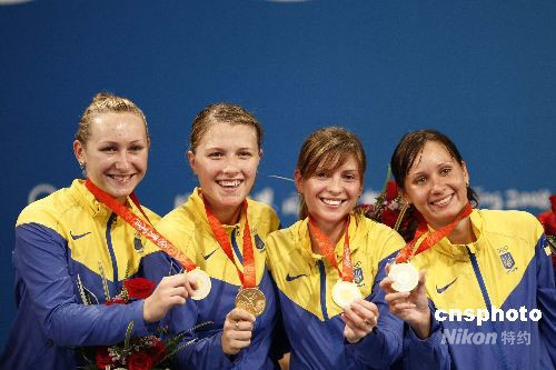 8月14日,北京奥运会女子佩剑团体决赛在国家会议中心击剑馆举行。经过三轮激战,中国队以44比45一分惜败给黑马乌克兰队,遗憾地获得银牌,乌克兰获得冠军。中新社发 盛佳鹏 摄