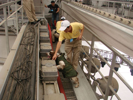 据悉,经过前期的认真准备和刻苦训练,从7月份开始,公安部从全国抽调支援各赛区的警犬技术骨干与北京、天津、河北、辽宁、上海、山东的带犬民警组成的警犬技术团队已经全力投入到奥运圣火传递、涉奥场所防爆安检等工作中,全体带犬民警携搜爆犬发扬顽强拚搏、连续奋战的工作作风,在各涉奥场所搜出许多危险物品,清除大量安全隐患,在奥运安保的主战场上发挥了特殊重要的作用。