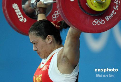 图:曹磊夺得北京奥运会女子举重75公斤级金牌