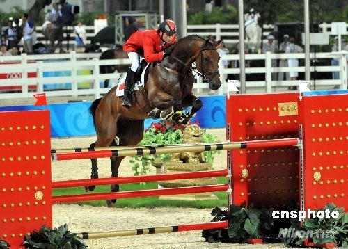 八月十五日晚,奥运马术在香港沙田举行场地障碍个人赛及团体赛的第一轮资格赛。中国香港马术队选手林立信在奥运马术场地障碍赛上登场。中新社发 邓庆乐 摄