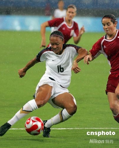8月15日,北京奥运会女足,美国VS加拿大的比赛在上海体育场进行。最终,美国队以2:1战胜加拿大队,挺进四强。中新社发 汤彦俊 摄