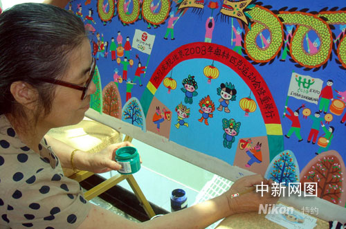 金山农民画家以画作庆奥运盛会。万军摄