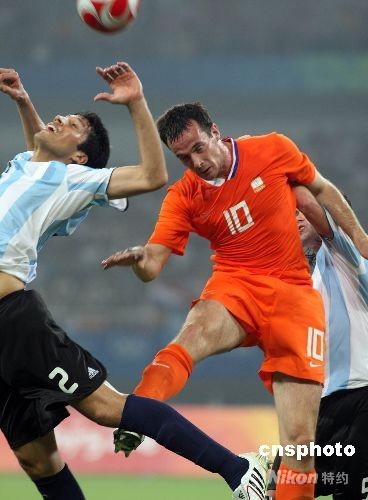 8月16日,北京奥运会男足阿根廷VS荷兰的比赛在上海体育场进行。经过120分钟激战,荷兰队1:2不敌阿根廷无缘四强。中新社发 汤彦俊 摄