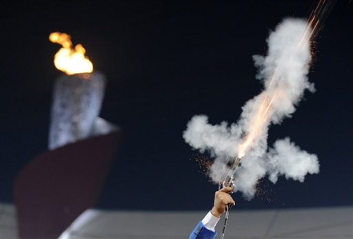 8月20日,北京奥运会田径比赛在国家体育场鸟巢继续进行。图为发令枪响的瞬间。