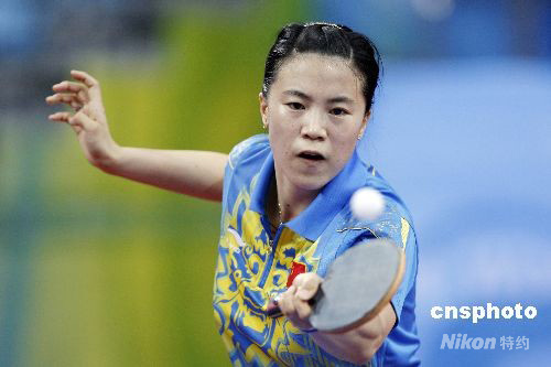 8月21日,北京奥运会乒乓球女子单打第四轮的比赛在北京大学体育馆进行,中国选手郭跃、王楠分别战胜对手晋级下一轮比赛。中新社发 盛佳鹏 摄