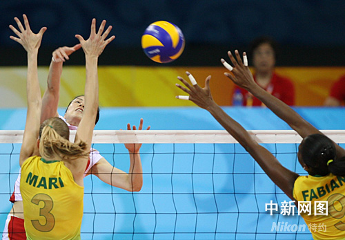 8曰21日,在刚刚结束的女排半决赛中,中国女排0:3负于巴西,无缘决赛。中新社记者 武仲林 摄