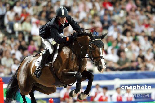 图:英国选手马厄在马术场地障碍赛获得零罚分