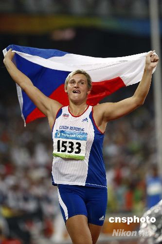 8月21日,捷克选手巴尔博拉.斯波塔科娃在北京奥运会女子标枪决赛中,以71米42的成绩夺得金牌。 中新社发 盛佳鹏 摄