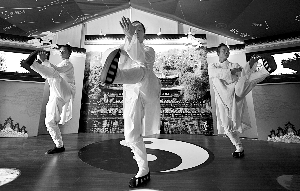 7月26日,“中国故事”湖北小屋内,正在进行武当功夫表演。陈杰 摄