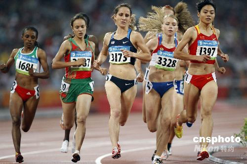 8月21日,北京奥运会田径比赛女子1500米预赛在国家体育场进行,中国选手刘青(右一)位列小组第9名,无缘决赛。中新社发 盛佳鹏 摄