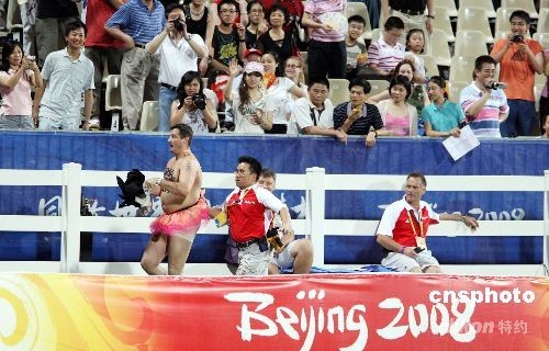 图:奥运马术赛场一观众穿奇裝被驱出场