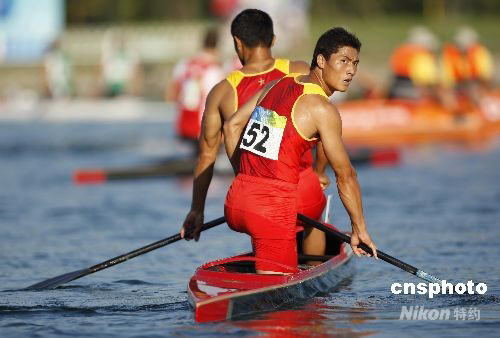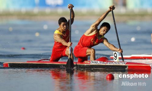 8月22日,在北京顺义奥林匹克水上公园结束的皮划艇男子双人划艇1000米决赛,中国队陈忠云 、张志武获得第五名。 中新社发 盛佳鹏 摄