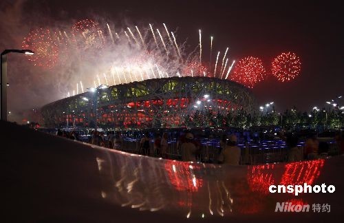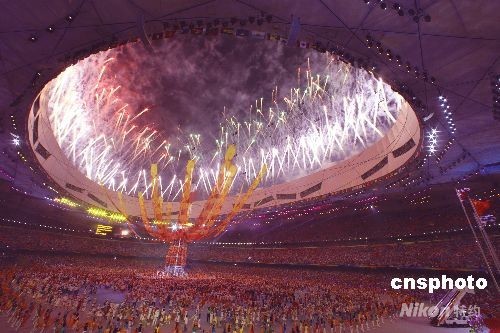 8月24日晚21时45分,北京奥运会闭幕式在奥林匹克公园内的国家体育场上空烟花映照下结束,经历了激烈鏖战的世界各地运动员在“鸟巢”内享受欢乐。