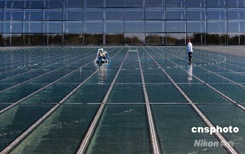 9月1日,北京又迎来一个最好一级天,随着北京残奥会的临近,国家大剧院开始“洗面”迎接残奥盛会的到来。中新社发 郑雄增 摄