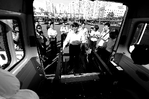 昨日,北京公交集团,北京市交通委副主任周正宇(中)正在体验无障碍出租车。
