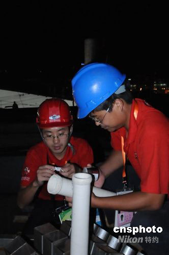 将在九月六日晚上演的残奥会开幕式,主会场鸟巢将呈现宇宙星光的绮丽场景,焰火将打出流星等特殊星光造型,让观众沿着流光溢彩的星光大道,步入北京残奥会的“欢乐时空”。目前,鸟巢烟花已经全部准备就绪。图为工作人员在残奥会开幕前夕在鸟巢安装烟花。中新社发 熊迪 摄
