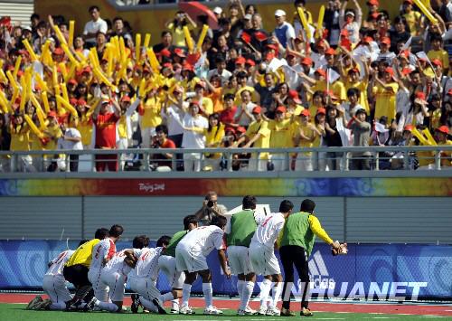9月10日,在北京2008年残奥会七人制足球第一轮比赛中,伊朗队以3比0战胜英国队。伊朗队球员在比赛结束后集体跪谢观众。 新华社记者 刘力航 摄