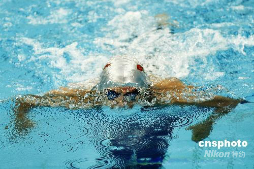 9月10日,北京残奥会男子100米蛙泳SB9级决赛在北京国家游泳中心“水立方”举行,最终南非选手凯文·保罗摘金。图为西班牙选手哈维尔·克雷斯波在比赛中。中新社发 盛佳鹏 摄
