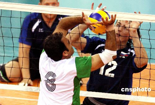 坐式男子排球伊朗队战胜俄罗斯队进决赛