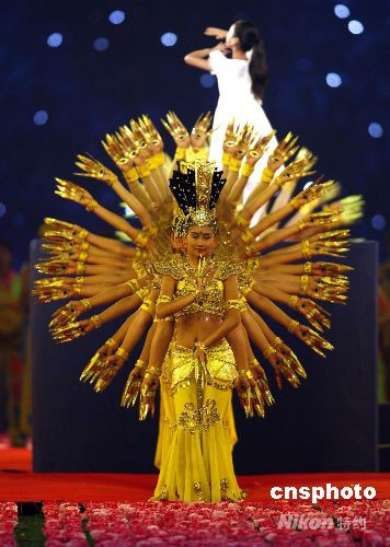 图为闭幕式上演千手观音。 中新社发 杜洋 摄