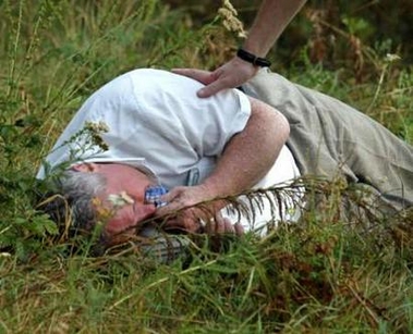 俄罗斯一架飞往圣彼得堡的图154客机8月22日在乌克兰东部坠毁,机上约有160名乘客和11名机组人员。图为俄客机坠毁事件目击者躺在草地上。(固山)