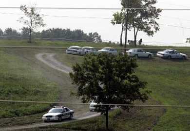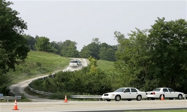 列克星顿机场附近的公路上警车停靠成一线,封锁了去往坠机地点的道路。(章田/雅龙)
