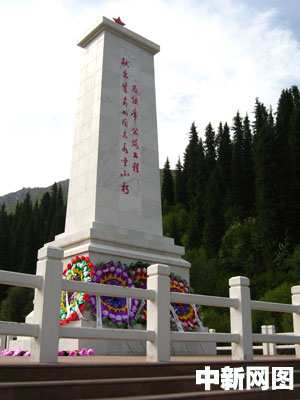 中新网乌鲁木齐9月1日电 (杨小瑞 皮峰)芳草萋萋,哀乐低回。在天山深处217国道旁的新疆乔尔玛的天山独库公路烈士纪念碑前一片肃穆,来自军地双方的百余人日前参加了乔尔玛革命烈士陵园落成典礼仪式。