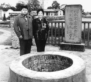 邵华和毛新宇母子俩在瑞金市沙洲坝镇“红井”前留影。