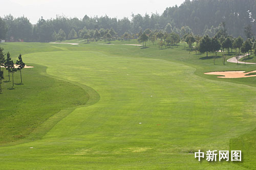 第五洞,标准杆3杆,164码:第五洞是一个非常漂亮的短洞,发球台高筑在林木之间。果岭上有一道邪恶的斜坡,攻击它时需要越过水障碍。如果旗杆插在果岭前方,这一洞会特别难;要是果岭上的草修剪到比赛的速度,难度会进一步增加。2005年昆明站最后一天,该洞只出现了4个小鸟球。 第六洞,标准杆4杆,388码:一个略微向左方偏的上坡洞。与球场的大多数洞相比,这一洞的问题相对较少。果岭相对较小,特别是前半部分,只有九步的距离。