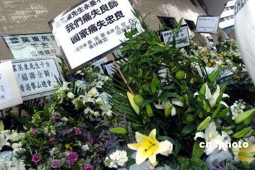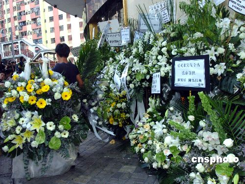 鲜花送霍老﹑朵朵寄哀思!有记者粗略统计,花圈数目超过800个﹐上至中央领导﹐下至普通小市民都有送花圈表敬意。霍英东成为香港殡仪馆有史以来设灵获得最多花牌的逝世人物。霍英东的逝世不仅成为近日香港新闻报章最大的新闻,也成为敬仰和喜爱他的人心头的隐痛。市民送的花圈多由白玫瑰和百合组成。中新社发 王丽南 摄