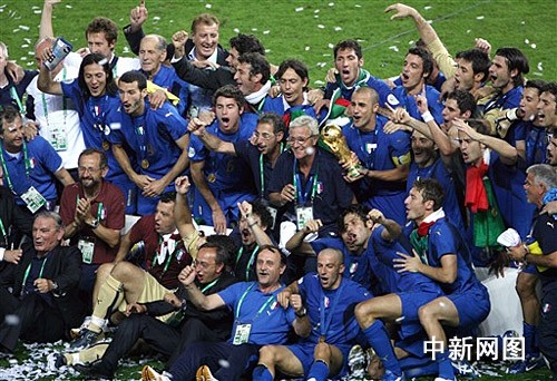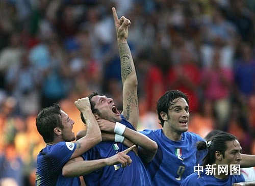 中新网7月10日电 经过了一个月的鏖战,2006德国世界杯北京时间今天凌晨在柏林落下战幕。意大利队和法国队进行的终极对决棋逢对手,两队在120分钟的比赛中以1比1战平。在残酷的点球大战中,亨利和齐达内下场后的法国队功亏一篑,被意大利队5比3点杀。法国队的超级巨星齐达内和意大利后卫马特拉齐成为比赛的焦点人物,齐达内在比赛刚开始就罚入一个点球为法国队先拔头筹,然而又因为头撞后者吃到红牌下场;马特拉齐则送给齐达内一个点球,但却戴罪立功攻入扳平的一球,此后他在加时赛挑逗齐达内吃红牌,在点球大战中他又罚入一个很关键的点球,帮助意大利队最终胜出。