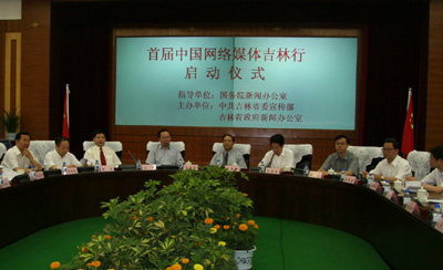 中新网长春7月17日电 7月17日,“首届中国网络媒体吉林行”启动仪式在长春举行。国务院新闻办副主任王国庆按动启动按钮。吉林省委书记王云坤全面介绍了振兴吉林老工业基地进展情况和今年上半年吉林省经济社会发展情况,并接受了记者采访。
